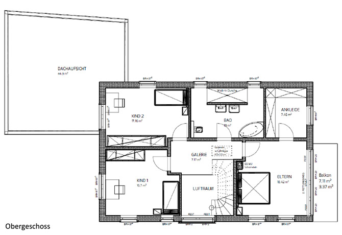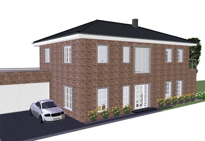 Wohnfläche (NGF gem. DIN 277) ca. 180 qm, ca. 14,50m Länge x 8,50m Breite (optional mit Keller und Garage)