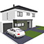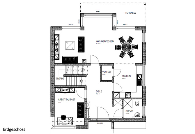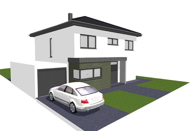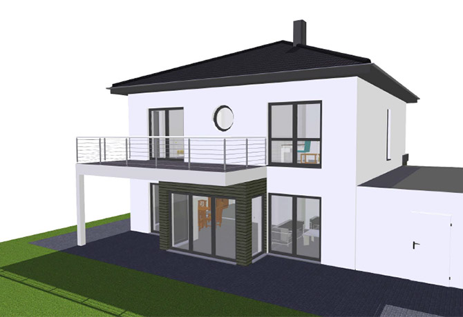 Wohnfläche (NGF gem. DIN 277) ca. 150qm, ca. 10m Länge x 10m Breite (optional mit Keller und Garage)