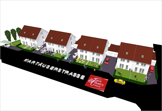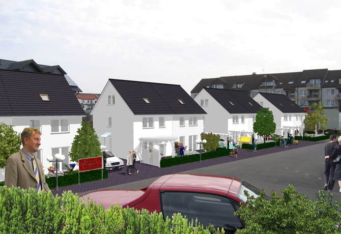 Für einen führenden deutschen Massivhausanbieter wurde die Bebauung eines Straßenzuges in Bornheim entwickelt. Es wurden insgesamt 8 Doppelhaushälften innerhalb eines Jahres in energiesparender Technik realisiert.