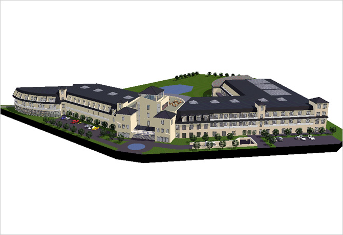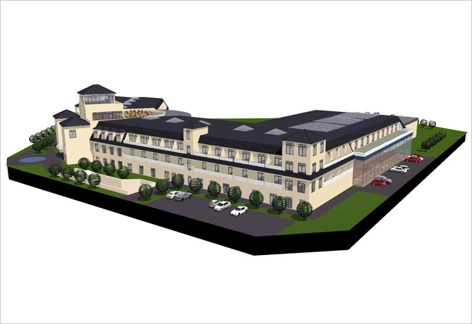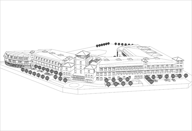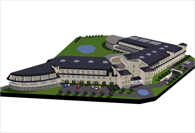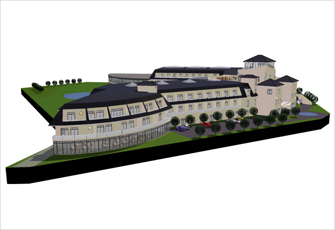 Für eine Entwicklungsgesellschaft wurde ein Sporthotel mit einer Bruttogrundfläche von rund 28.000m² in Zingst (Ostsee) projektiert. Das Sporthotel sollte sich in unmittelbarer Nähe zur Ostsee in das landschaftliche Bild einfügen.